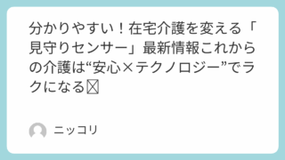 お仕事のお悩み解決 分かりやすい!💡在宅介護を変える「見守りセンサー」最新情報🌙これからの介護は“安心×テクノロジー”でラクになる✨ 「夜間の見守りが大変…😣」「一人で介護するのが不安…」そんな在宅介護をサポートするのが最新の“見守りセンサー”です💡転倒検知・体動センサー・AIカメラなど、最新の介護テクノロジーを初心者でもわかりやすく徹底解説!✨🌸はじめに:在宅介護の「見... 2025.10.20 お仕事のお悩み解決介護情報